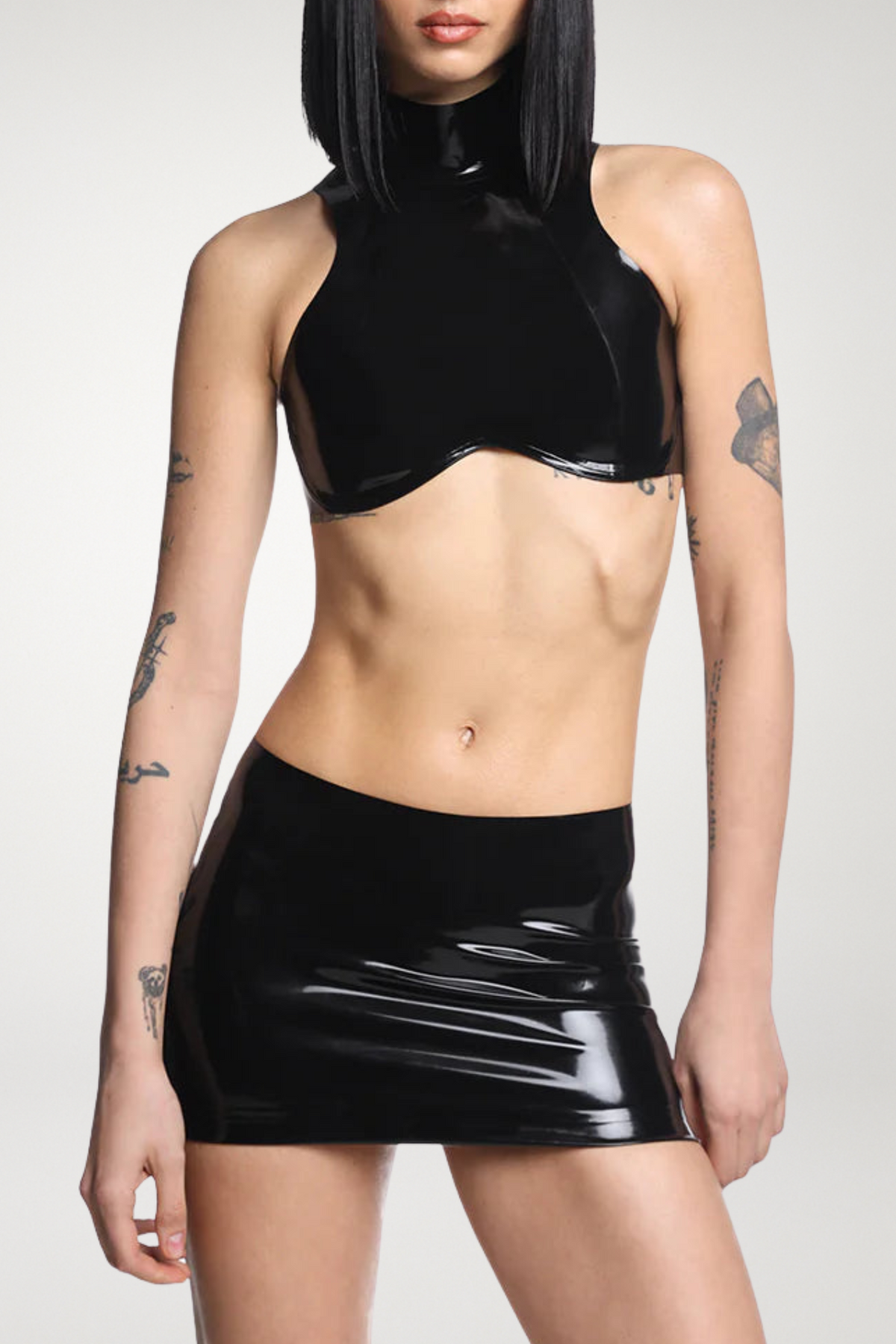 Turn heads with the ultra-mini Anoeses Latex Skirt Adella, designed to make a bold statement. Crafted from high-quality latex, this skirt is tight, short, and irresistibly sexy, perfectly contouring your curves and accentuating your silhouette.