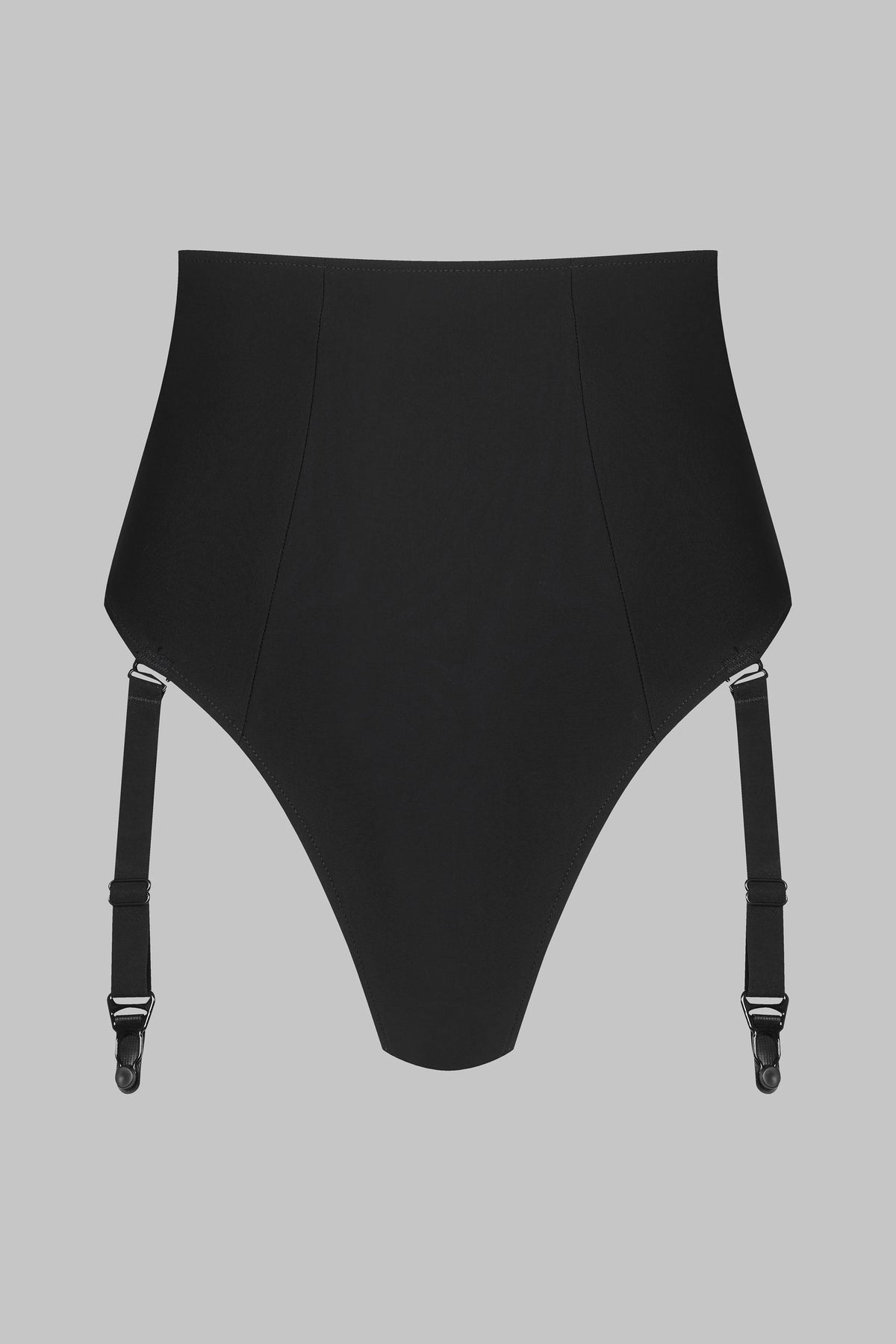 At the front, graphic cut-outs create a structured, modern look, while the thong cut at the back ensures a flawless fit that flatters your curves. The high waist elongates and defines the body, enhanced by adjustable and detachable garter belts for versatile styling. A creation that embodies elegance with just the right touch of daring.