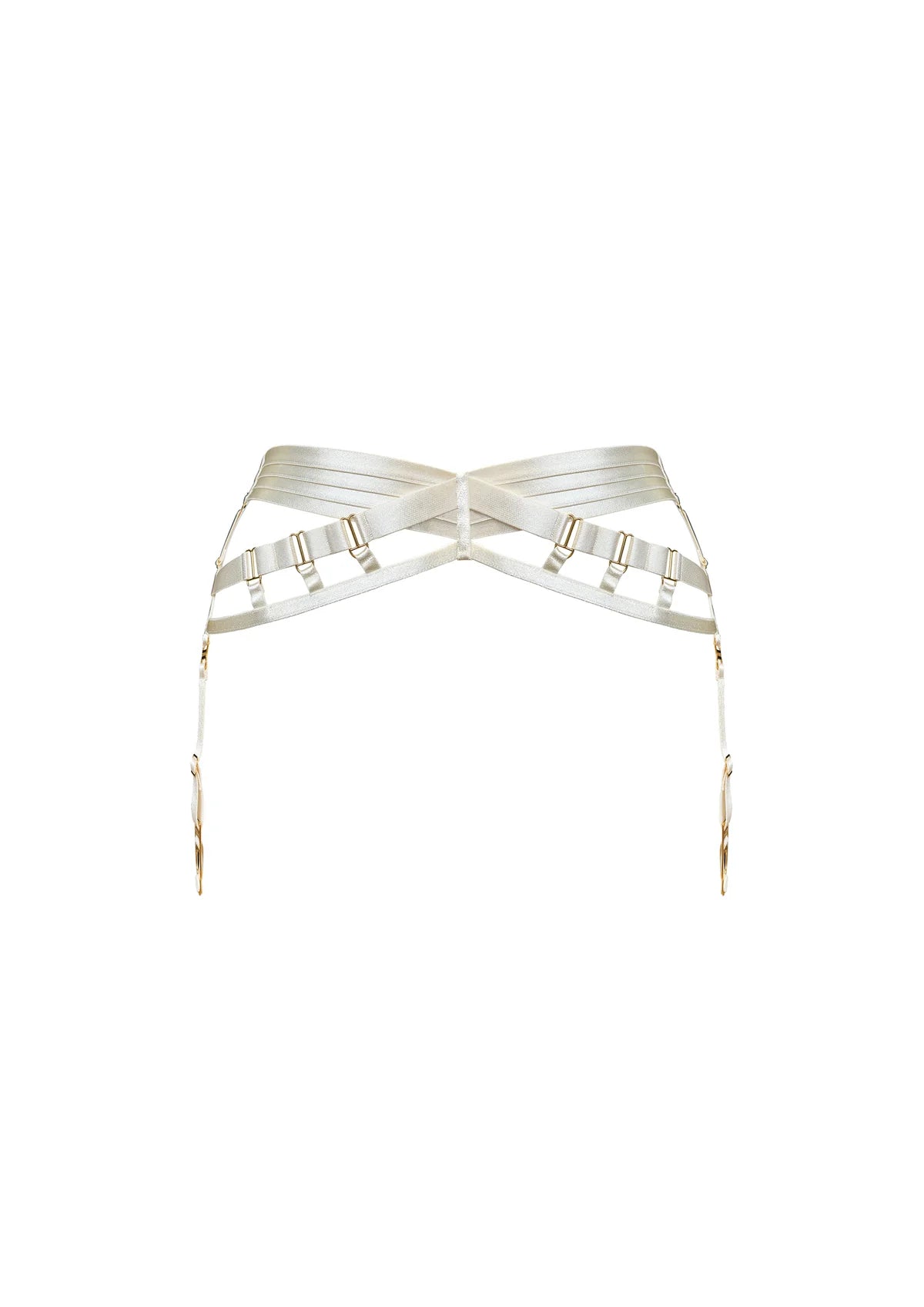 The Bordelle Signature Suspender in Cream is the perfect finishing touch to any Bordelle look in Cream. Crafted entirely from the brand’s iconic satin elastic strapping in a soft, classic Cream tone, this two-strap suspender combines sculptural lines with refined elegance.