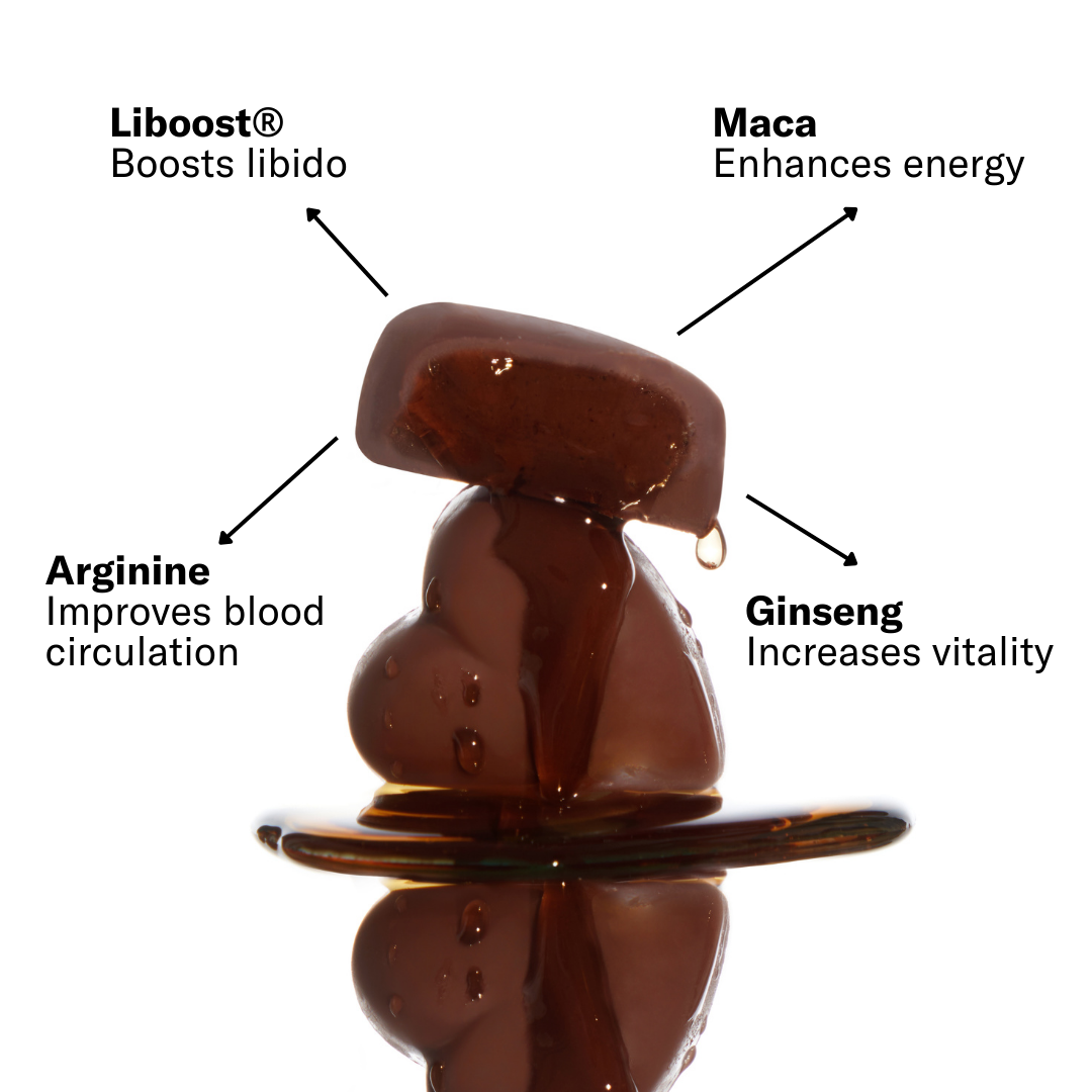 Irresistible aphrodisiac caramel-filled chocolates for him and her. Designed to awaken energy, deepen intimacy and heighten pleasure.