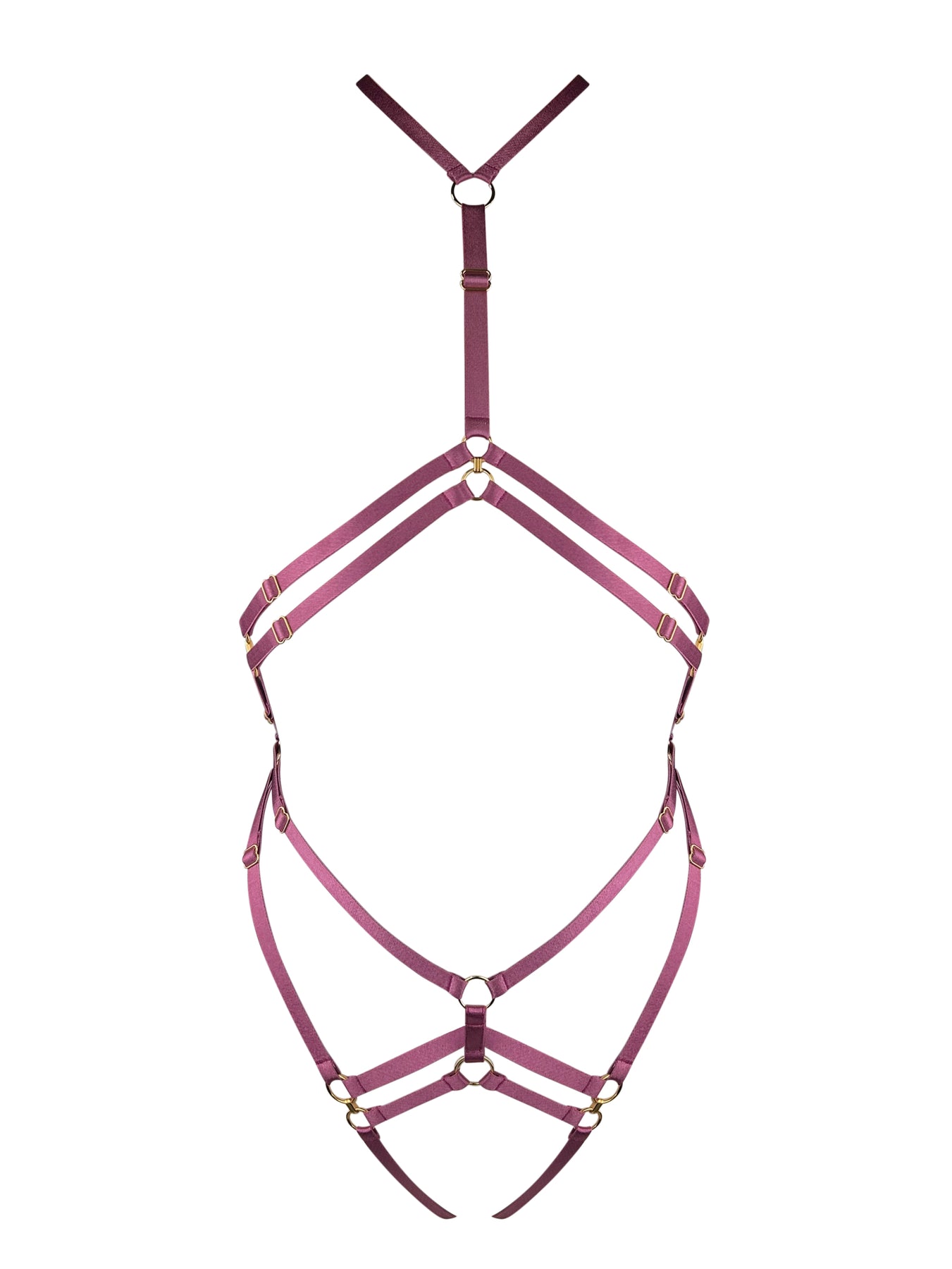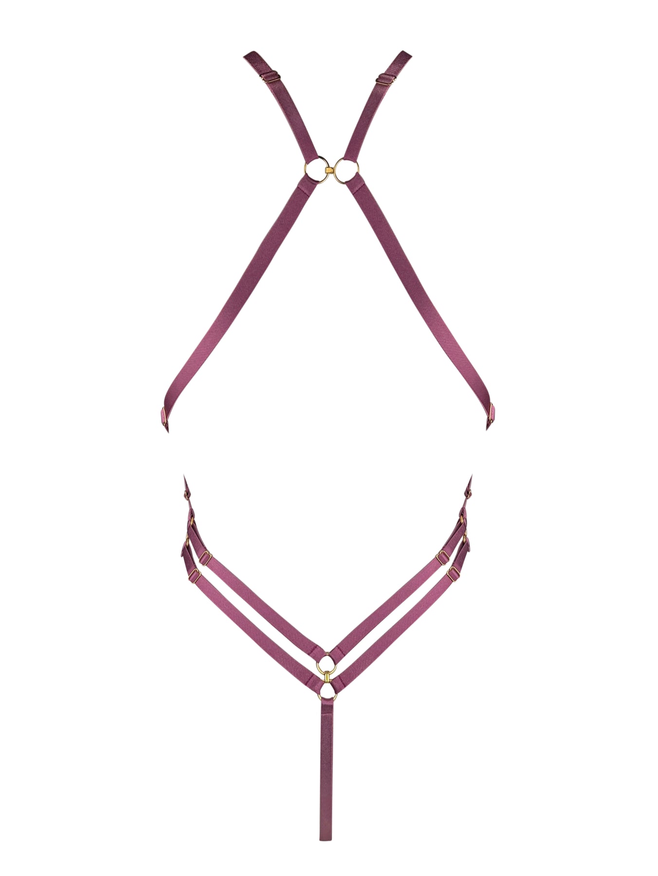 Its versatile design allows you to style it in multiple ways: wear it as an Ouvert body harness for a striking lingerie look, or layer it over the Signature Strap Body or Cupless Body to elevate your ensemble with that unmistakable Bordelle edge. Whether you choose to wear it on its own or as part of a full Melusina look, this piece commands attention and transforms every moment into one of confidence and allure.