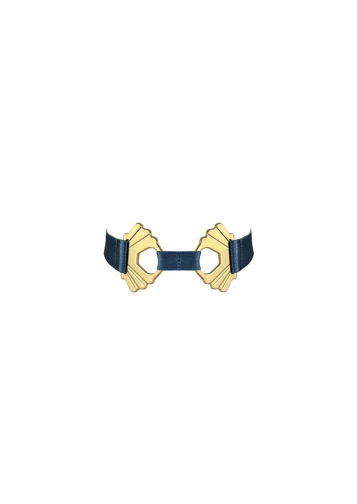 The Bordelle Melusina Strap Collar in Denim is an exquisite piece of lingerie-inspired jewellery, crafted from signature satin elastic strapping and finished with 24k gold-plated hardware. Designed to rest gracefully at the neck, it embodies the perfect balance between bold design and refined femininity.