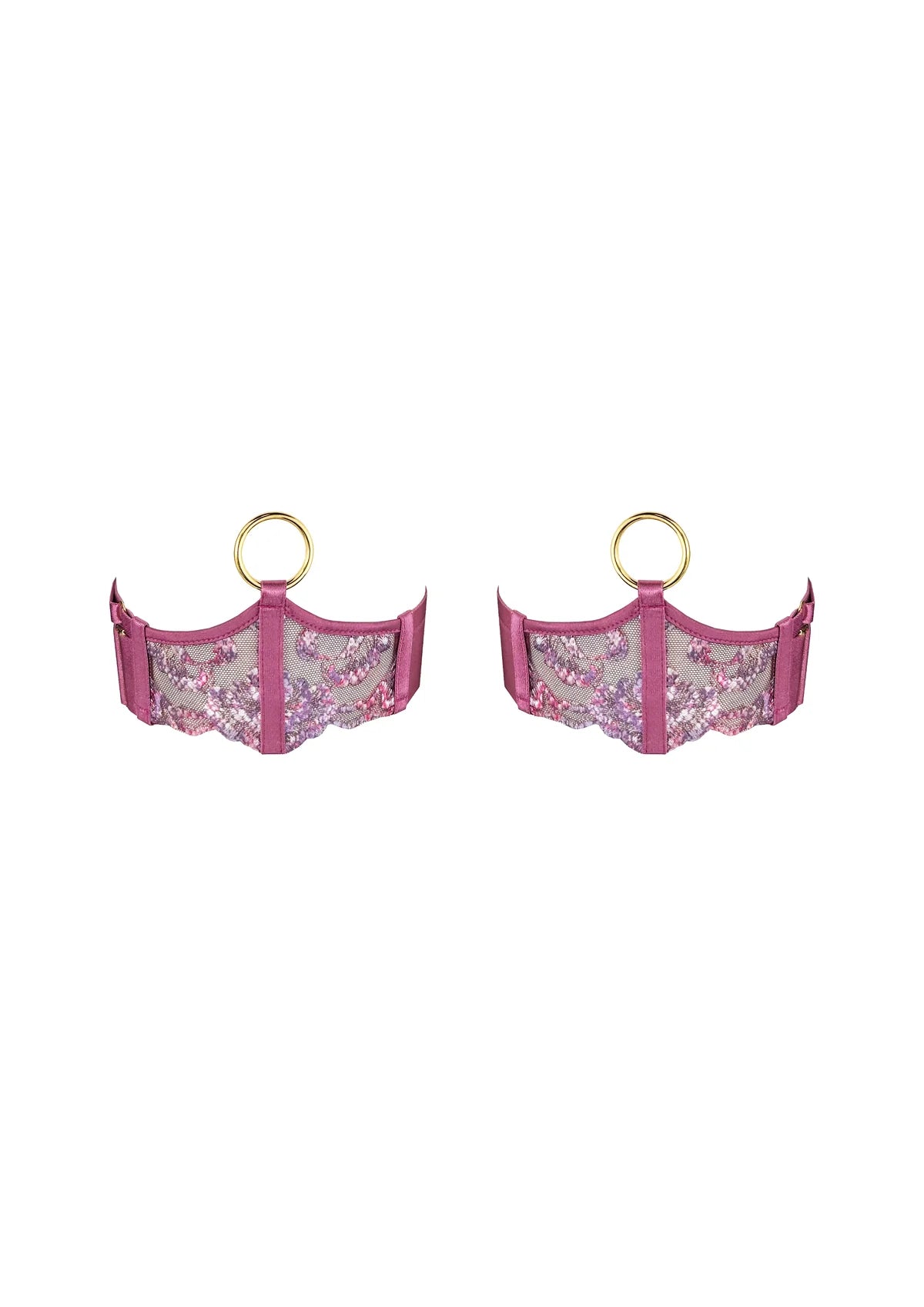 Complete your look with the Bordelle Siren Garters in Raspberry – an exclusive design created to perfectly complement any piece from the Siren Collection. Crafted from embroidered tulle and signature satin elastic strapping, these elegant thigh garters embody the seductive allure and intricate detailing that define Bordelle’s craftsmanship.